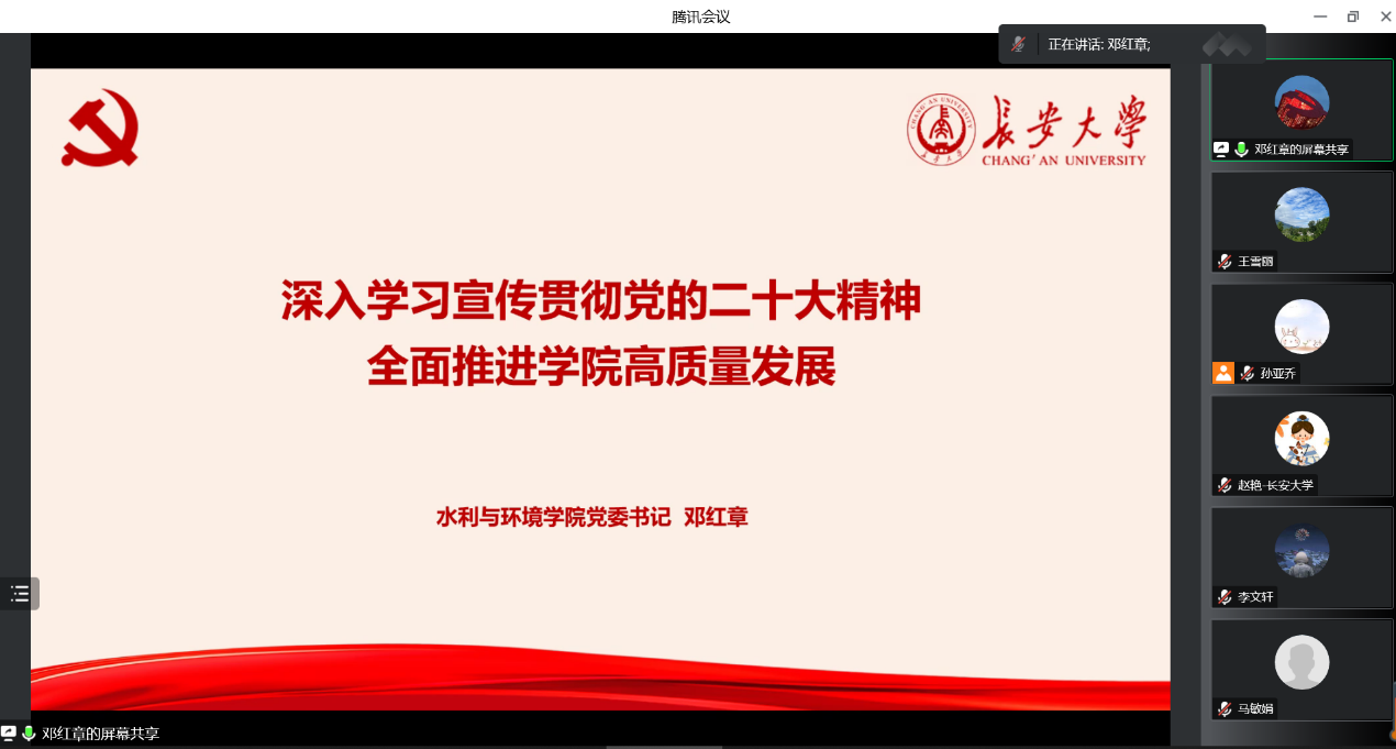 12月2日下午,水环实验中心党支部举办学习贯彻党的二十大精神主题党课学习活动,学院党委书记邓红章作了题为《深入学习宣传贯彻党的二十大精神,全面推进学院高质量发展》的主题报告。会议由支部书记孙亚乔主持,支部全体党员及水环中心全体教师参加了本次会议。