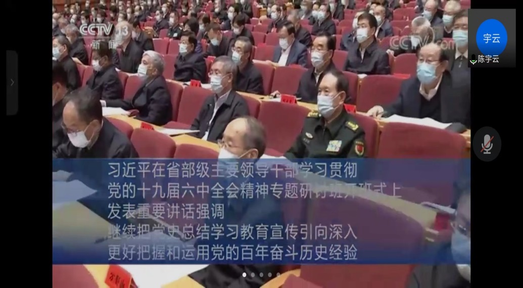 支部书记陈宇云对相关的疫情防控要求做了补充,接着带领大家学习了《金年会jinnianhuicom2022年教职工政治理论学习计划》的主要内容,并宣布了支部的学习计划。之后全系教师一起学习了央视网视频《习近平在省部级主要领导干部学习贯彻党的十九届六中全会精神专题研讨班开班式上发表重要讲话》。