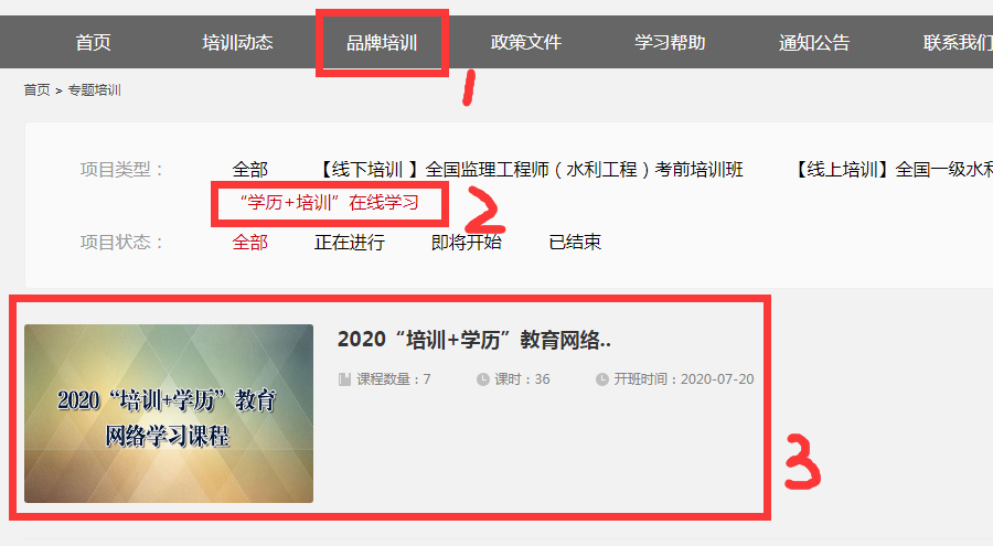 选择菜单栏中的“品牌项目”,项目类型选择“‘培训+学历’在线学习”,找到具体的培训项目