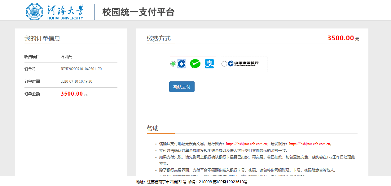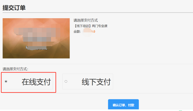 1、报名成功后直接跳转至缴费界面,选择“在线支付”