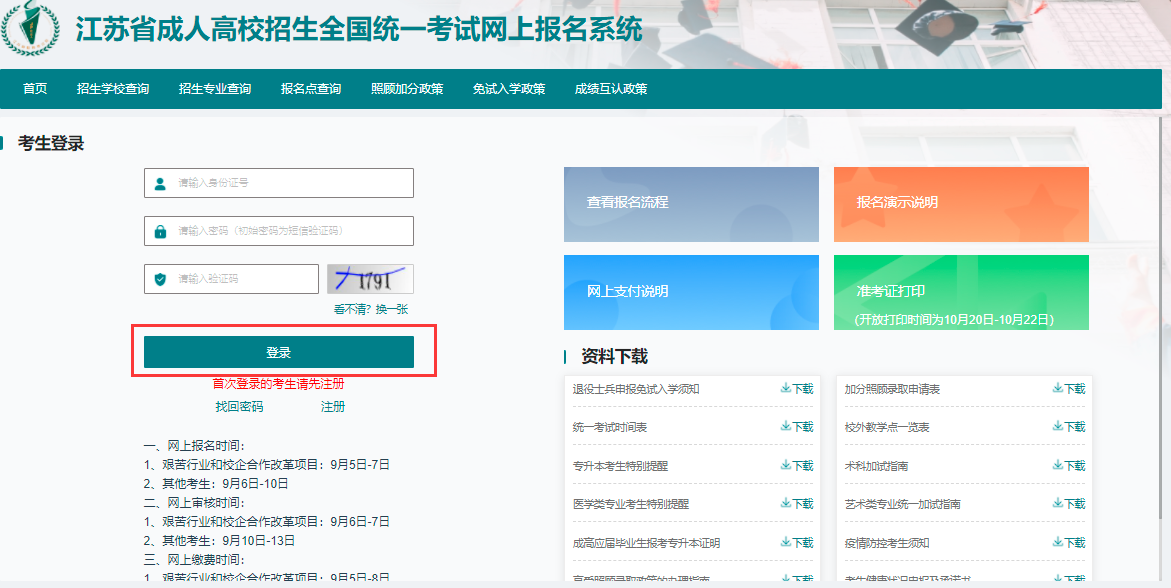 注册成功后系统自动跳转到登录页面,如下图。输入身份证号、密码、验证码后点击【登录】进入到报名页面。