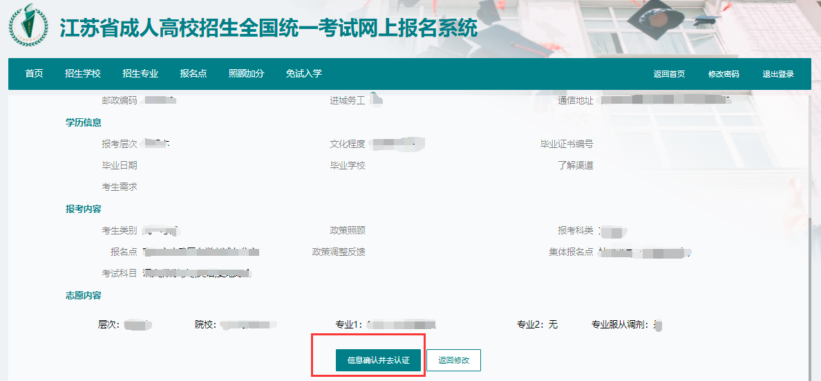 提示:支付完成后将不能修改考生信息、志愿信息、以及认证信息。