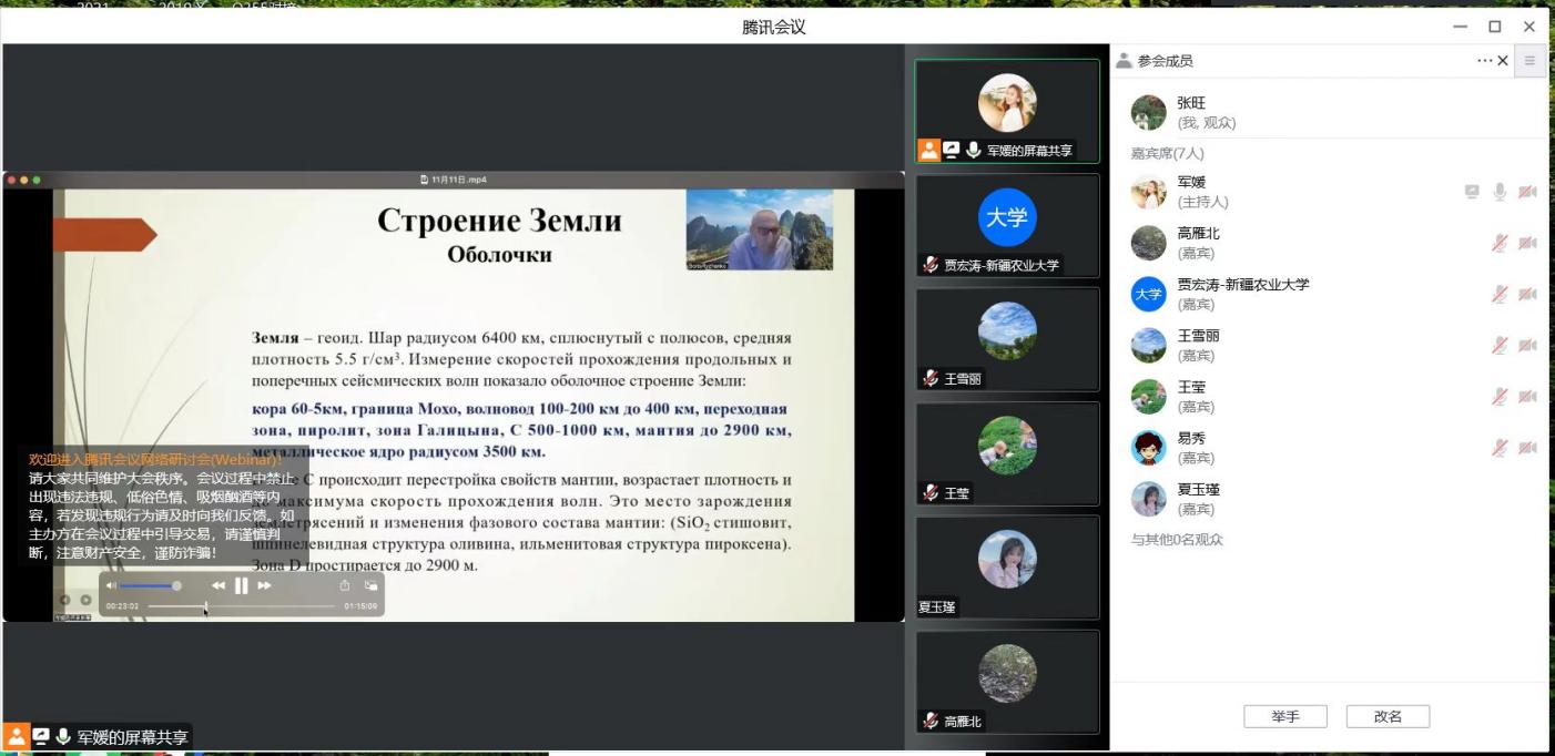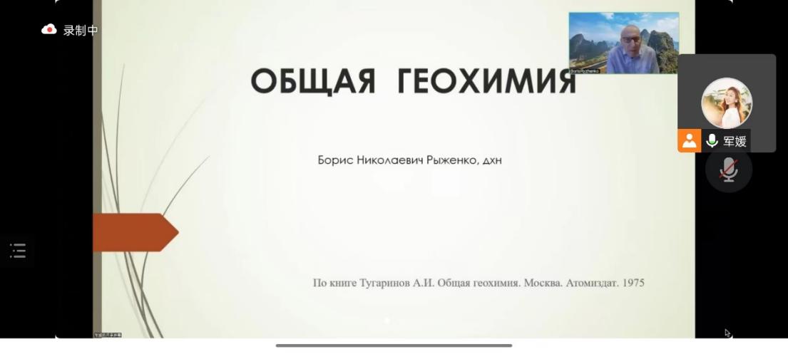 2022年11月11日,俄罗斯科学院水文地球化学与分析化学研究所Б.Н.雷仁科教授应金年会官网及水与发展研究院、国际处邀请,开展以“普通地球化学概论”为主题的中俄学术讲座。金年会jinnianhuicom副院长段磊、材料学院党委书记高雁北、国际处负责人及相关师生参加了会议,会议由水与发展研究院教师李军媛主持并担任翻译工作。