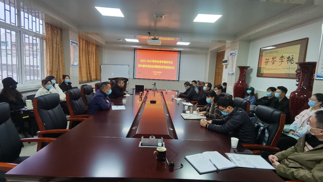 为进一步做好本学期的教学质量评价工作,全面了解教学运行实际情况,及时解决教学中存在的问题,11月11日,金年会官网在学院三楼会议室召开2022-2023学年秋季学期研究生期中教学检查及课程思政专题座谈会。学院党委书记邓红章、副书记王妍、副院长段磊、校院两级教学督导及教师代表和学生代表参加,段磊主持会议。