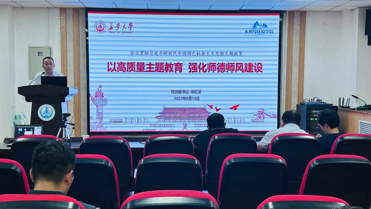 邓红章从筑牢政治忠诚、牢记责任担当、抓实主题教育、强化师德教育四个方面进行了详细的讲述。他指出,高校是教育、科技、人才三大功能齐备的科教兴国战略实施的重要承载体,作为高校教师,必须始终在思想上政治上行动上同党中央保持高度一致,深刻认识加强师德师风建设的重要性和紧迫性,自觉弘扬高尚师德,严格遵守师德规范,坚持以德立身、以德立学、以德施教、以德育德。他结合近年来教育部查处的高校教师师德失范案例,带领全体教师共同学习了《新时代高校教师职业行为十项准则》《关于高校教师师德失范行为处理的指导意见》《研究生导师指导行为准则》,要求每一位教师知准则、守底线,努力学习和践行“为人师表”,做精于“传道授业解惑”的“经师”和“人师”的统一者,在加快推进教育现代化、建设教育强国的征程中踔厉奋发、勇毅前行。