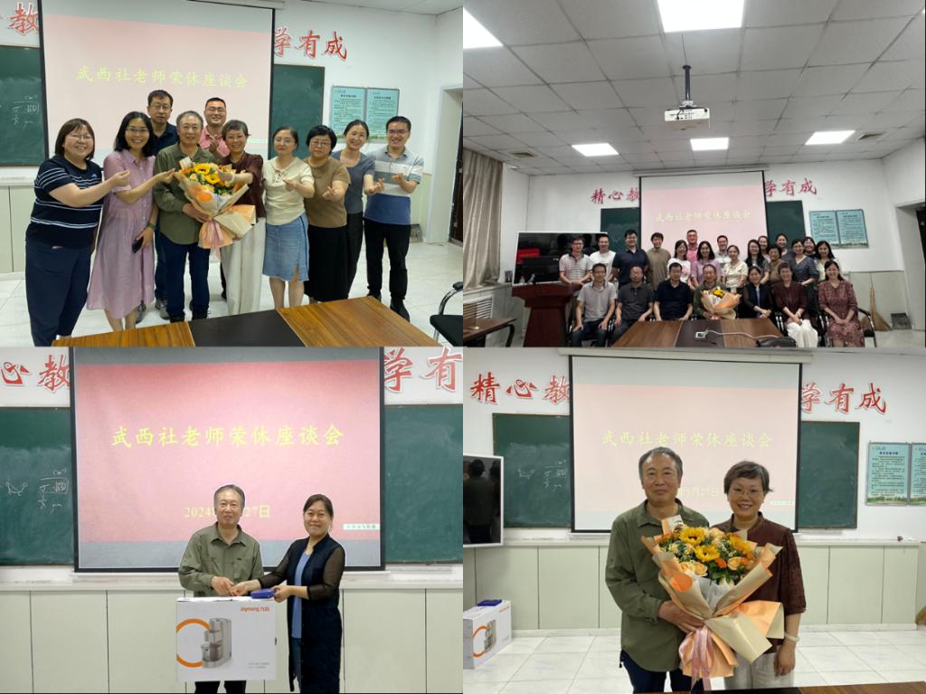 荆琳作总结发言。她首先代表学院感谢武西社老师这些年来为学院各项工作做出的突出贡献。她指出,武西社老师坚守实验讲台三十八年,为学校和社会培养了无数优秀学子,工作生涯中一直秉承着认真、勤恳的工作态度,为我国找矿事业作出了很大的贡献,这种无私奉献的精神值得我们每位在岗教职工学习。希望武西社老师“退而不休”,以后经常回学院,带动青年教师工作,为学院各项事业的发展继续献计献策。同时,荆琳勉励青年教职工,要认真学习和传承武西社老师积极向上、严谨认真的生活和工作态度,在新目标、新挑战下肩负起立德树人、教书育人的光荣使命,拼搏奋斗,砥砺前行。最后,荆琳代表学院和工会为武西社老师赠送了纪念品。
