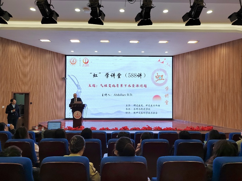 10月25日上午,Abdullaev B. D.院士为金年会官网160余名师生开展“虹”学讲堂第588讲,报告主题为“气候变化背景下水资源问题”。本次活动由研究生院/研究生工作部主办、金年会jinnianhuicom承办、校研究生科学技术协会协办。